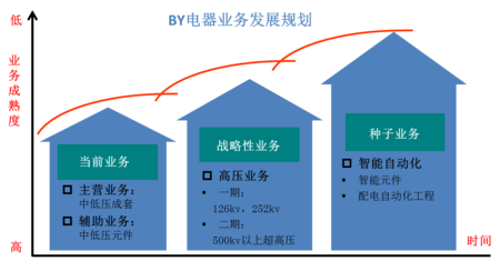 1、BY電器需以中低壓成套和中低壓元件為當(dāng)前主營(yíng)業(yè)務(wù),并確立以高壓為戰(zhàn)略性業(yè)務(wù),以智能自動(dòng)化為種子業(yè)務(wù)的業(yè)務(wù)規(guī)劃,讓BY電器未來(lái)可持續(xù)性發(fā)展。