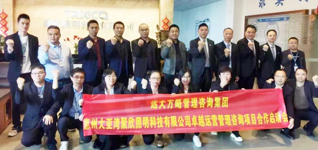 惠州大亞灣聚欣照明科技有限公司(以下簡稱“聚欣照明”)攜手遠(yuǎn)大方略開啟《卓越運(yùn)營管理》咨詢項(xiàng)目,加強(qiáng)組織建設(shè),優(yōu)化運(yùn)營管理體系,提升內(nèi)部管理能力,助推企業(yè)持續(xù)健康發(fā)展。
