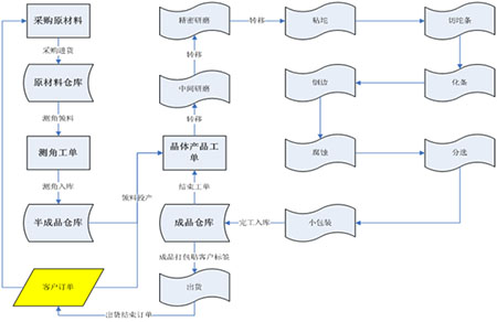 測(cè)角工藝對(duì)物料角度的分選,分選后對(duì)不符合角度的物料需要回倉(cāng)管理;原材料需要有特征碼(如:角度參數(shù))及特征分類庫(kù)存管理。