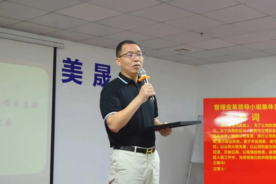 啟動會上杰美晟劉總發(fā)表重要講話,劉總表示在這個高速變化的世界,產(chǎn)業(yè)在變,環(huán)境在變,對手在變,周圍的一切都在變。面對各種無法控制的變化,大家必須懂得用樂觀和主動的心態(tài)去擁抱變化,然而變化往往是痛苦的,但機會卻往往在適應(yīng)變化的痛苦中獲得。此次啟動精益管理變革項目對杰美晟具有里程碑式的意義,遠(yuǎn)大方略老師團(tuán)隊將全程指導(dǎo),希望大家能夠積極配合老師的工作,共同提升杰美晟精益管理水平,提高生產(chǎn)效率,為杰美晟長遠(yuǎn)效益的增長助力。
