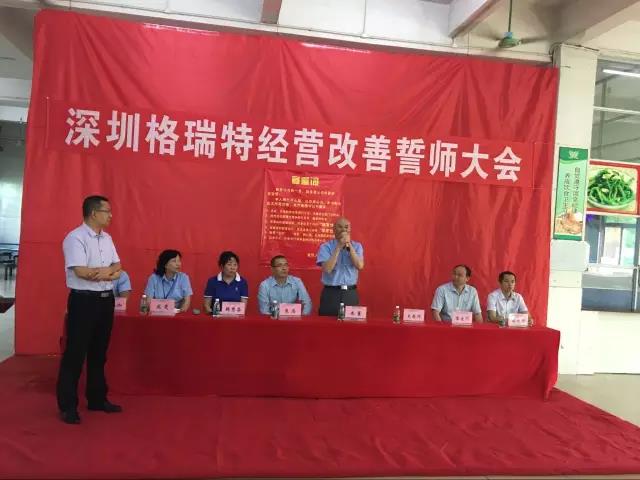 2016年5月25日,“深圳格瑞特公司經(jīng)營(yíng)改善誓師大會(huì)”勝利召開(kāi)。該公司全體員工、遠(yuǎn)大方略項(xiàng)目組老師等參加了大會(huì)。