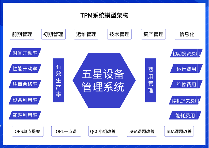 設備前期管理、設備初期管理、 設備運維管理、設備技術管理、 設備資產(chǎn)管理、 設備信息化管理。