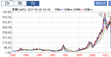 從上圖可以清晰的看出,蘋(píng)果的股價(jià)從2009年開(kāi)始一路高歌,節(jié)節(jié)攀升。連很少觸碰高科技股和網(wǎng)絡(luò)股的股神巴菲特都在2016年開(kāi)始大筆買(mǎi)進(jìn)蘋(píng)果公司股票。巴菲特旗下的伯克希爾·哈撒韋公司16年5月披露的信息中出現(xiàn)了蘋(píng)果股票的身影,但當(dāng)時(shí)只持有981萬(wàn)股的蘋(píng)果股票,然而從16年三季度開(kāi)始,伯克希爾就開(kāi)始大舉買(mǎi)入蘋(píng)果公司股票,在2016年年底已持有6120萬(wàn)股的蘋(píng)果股票。而在17年2月27日的一次訪談中,巴菲特透露在蘋(píng)果2017財(cái)年一季度財(cái)報(bào)發(fā)布之前,伯克希爾所持有的蘋(píng)果股票翻了一番,目前已持有1.33億股的蘋(píng)果股票,已成為蘋(píng)果公司第二大股東。此時(shí)喬布斯已經(jīng)離開(kāi)多年。我們不得不承認(rèn)喬布斯對(duì)蘋(píng)果公司及整個(gè)科技界的貢獻(xiàn),是劃時(shí)代的創(chuàng)新!但我們把視線投向另外一個(gè)人:庫(kù)克!