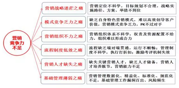 如何破解營銷管理的六大痛點?就需要結(jié)合企業(yè)的特點構(gòu)建起適合企業(yè)的營銷戰(zhàn)略和營銷模式,做好營銷戰(zhàn)略與模式的細節(jié)與過程管理,把營銷過程管理做到極致,通過過程管理的極致來保證結(jié)果目標的實現(xiàn),做好結(jié)果與過程之間的有效分解與控制!