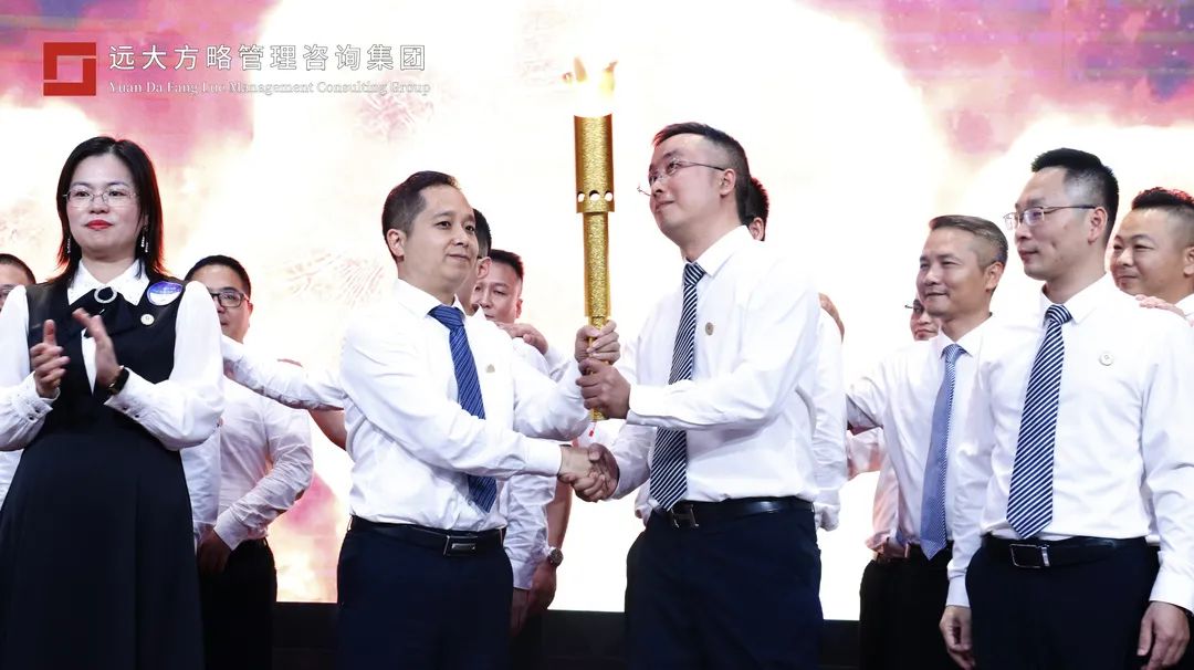 一家優(yōu)秀的企業(yè)是有責任、有擔當、有使命的,作為企業(yè)的員工也當始終謹記自己的使命,履行職責。全體成員起立集中佩戴了遠大方略徽章,隨后領導成員上臺傳遞火炬,由雷老師點燃火炬,也預示著點燃遠大方略美好明天,之后將火炬向下依次傳遞,傳遞的不僅僅是火炬,更是夢想和希望。