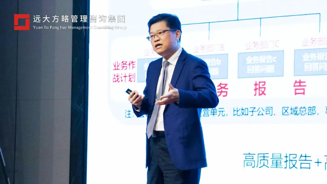 本次戰(zhàn)略課程將主要從“戰(zhàn)略復盤、戰(zhàn)略思維、戰(zhàn)略規(guī)劃、再到戰(zhàn)略解碼”等方面逐層剖析,全面梳理華為從戰(zhàn)略到執(zhí)行的全流程,課程開始之前遠大方略總經(jīng)理為大家梳理了整個課程的框架;同時介紹了舉辦此次課程的初心,隨后雷老師請出了今天課程的主講老師——楊?老師主講。楊老師首先從“戰(zhàn)略復盤”的角度,以“一報一會”引入,即“經(jīng)營分析報告”和“經(jīng)營分析會議”。