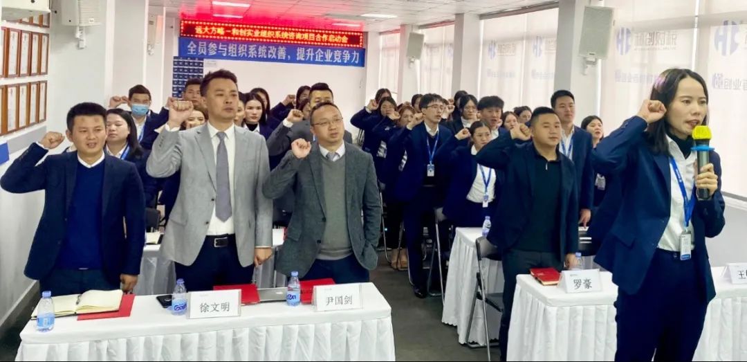 啟動會上,羅總向遠大方略項目老師頒發(fā)了授權(quán)書,為項目團隊頒發(fā)了任命書,宣布項目組成立、項目正式啟動,并一起進行了宣誓,進一步堅定了公司上下變革的決心。