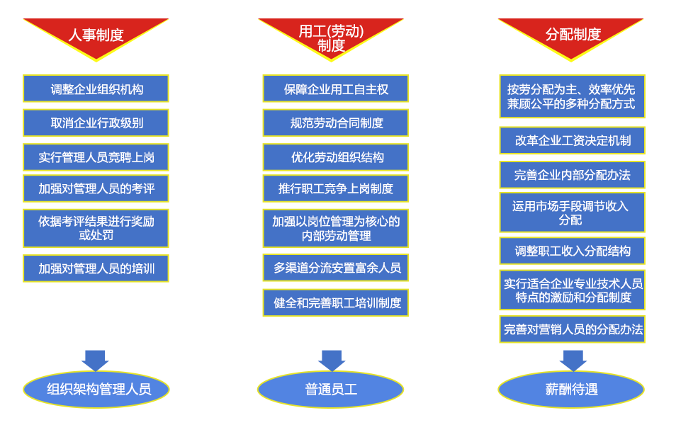 ◆ 分配方面:包括企業(yè)工資總額決定機(jī)制、薪酬績效考核、混合所有制改革、員工持股、改革容錯(cuò)機(jī)制等。