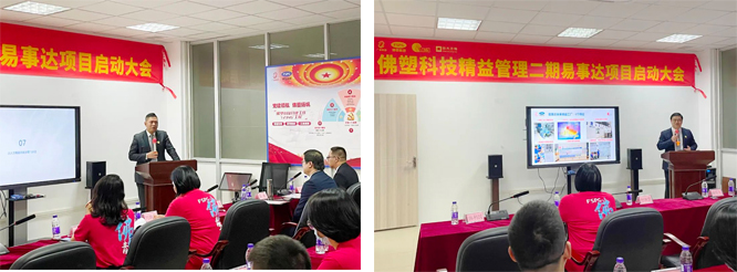 會(huì)上,項(xiàng)目老師結(jié)合佛塑科技及旗下各公司前期開(kāi)展項(xiàng)目的情況和易事達(dá)公司的實(shí)際情況,闡述了項(xiàng)目計(jì)劃,并對(duì)各階段行動(dòng)任務(wù)和目標(biāo)做了詳細(xì)說(shuō)明。