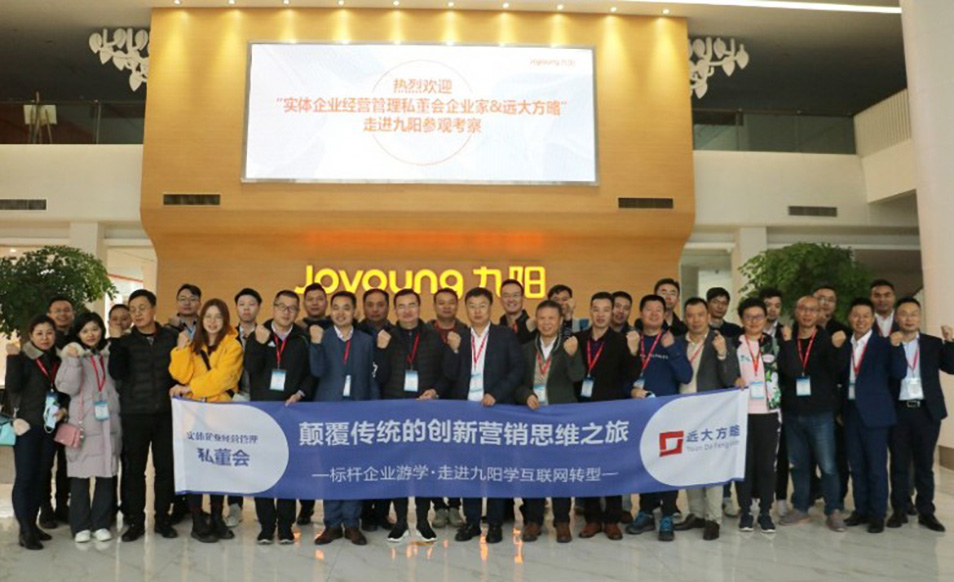 向樣板企業(yè)學(xué)習(xí),各企業(yè)家都興奮不已,11月27日在遠(yuǎn)大方略導(dǎo)師團(tuán)的陪同下,眾位企業(yè)家走進(jìn)九陽(yáng),學(xué)習(xí)九陽(yáng)運(yùn)營(yíng)與創(chuàng)新模式,在新時(shí)代下如何成功轉(zhuǎn)型。九陽(yáng)今天的成功除了本身的實(shí)力,其中很關(guān)鍵的一步是將企業(yè)文化真正做到了落地。此次參觀中,各優(yōu)秀企業(yè)家參觀了九陽(yáng)文化展區(qū)、九陽(yáng)食尚+產(chǎn)品展區(qū),了解了九陽(yáng)的新產(chǎn)品和技術(shù),體驗(yàn)了勞動(dòng)的辛苦、秩序和美感,感受到了九陽(yáng)文化中的生活美學(xué)。