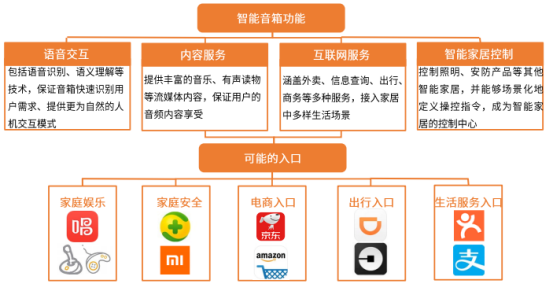 智能音箱是一款將多項人工智能技術進行創(chuàng)新融合的具備智能語音交互系統(tǒng)、內容以及互聯網服務內容,同時,又可以擴展更多設備、內容接入的智能終端產品。目前,我國智能音箱的主要功能包括內容娛樂服務、智能家居控制、語音交互、互聯網服務及內容接入等功能。