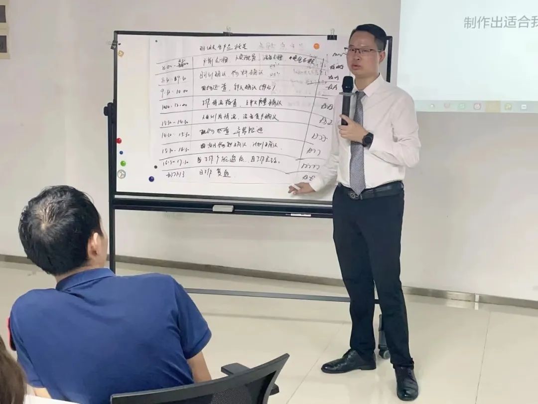本次項目制系列課主要包括《金牌班組之標準作業(yè)》《金牌班組之動作經(jīng)濟原則》《金牌班組之高效高質(zhì)量早會》等十多節(jié)課程,為確保培訓(xùn)內(nèi)容的有效落地,此次培訓(xùn)采用半天培訓(xùn)+半天輔導(dǎo)的形式,全面提升一線班組長能力,打造金牌班組長。培訓(xùn)開始之前首先進行了開營儀式,營造濃厚學(xué)習(xí)氛圍,明確學(xué)習(xí)目標。