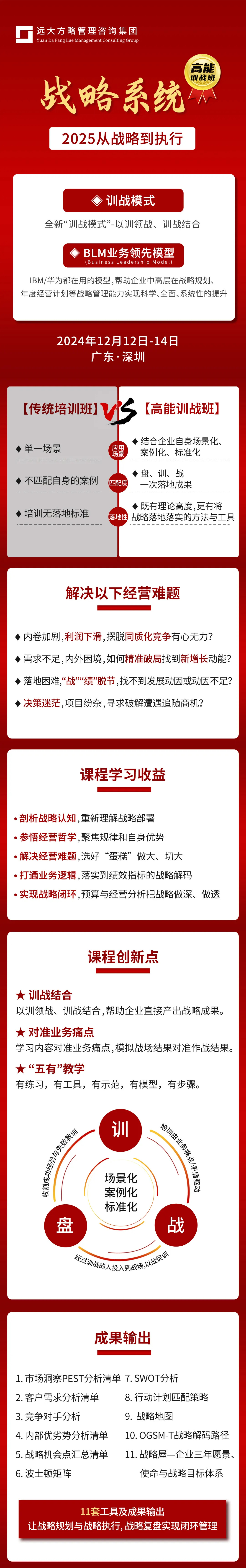 12月12日-14日《戰(zhàn)略系統(tǒng)-2025從戰(zhàn)略到執(zhí)行》高能訓(xùn)戰(zhàn)班