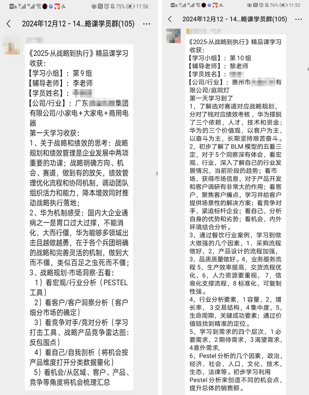 課堂上老師全程高能輸出,不僅讓學(xué)員掌握了豐富的理論知識,還有一套行之有效的工具方法;課上針對性的演練,老師現(xiàn)場輔導(dǎo)答疑解惑,讓學(xué)員把每一個(gè)知識點(diǎn)都落到實(shí)處;課上作業(yè)分享,課后總結(jié)收獲,鞏固知識要點(diǎn),讓每一位學(xué)員回到企業(yè)都能夠制定一套適合企業(yè)的戰(zhàn)略方案,真正做到學(xué)來即用,落地即見效。