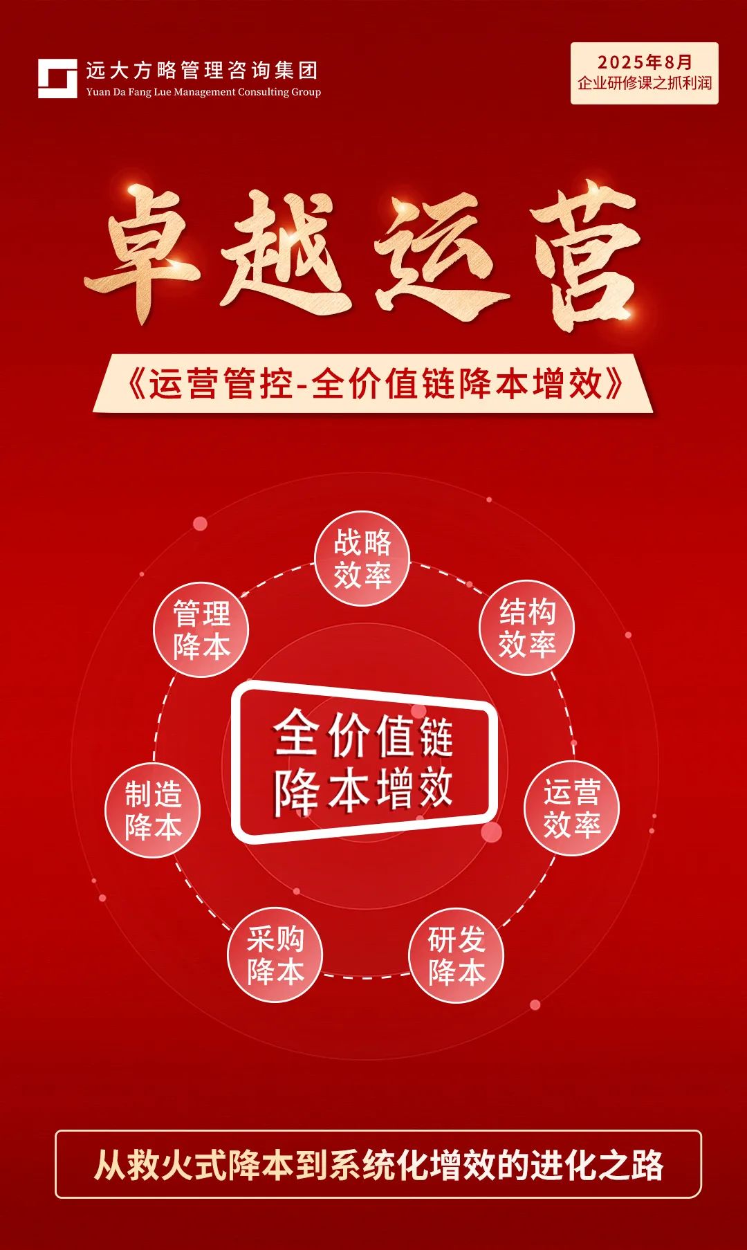報(bào)名通道已開(kāi)啟!8月21日-23日《運(yùn)營(yíng)管控-全價(jià)值鏈降本增效》企業(yè)研修課