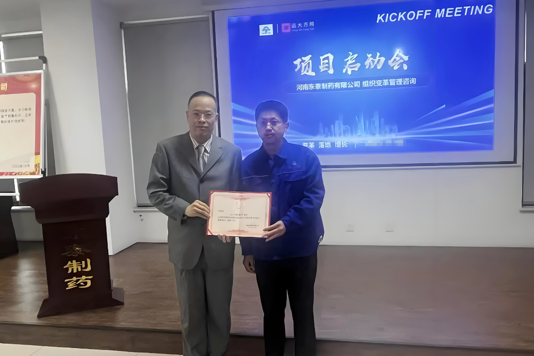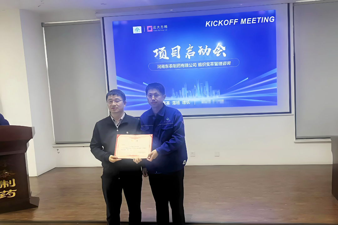 近日,河南東泰制藥有限公司(以下簡稱“河南東泰制藥”)攜手遠大方略啟動《組織優(yōu)化管理變革》咨詢項目,構建更加科學合理的組織架構,提升跨部門協(xié)作能力,完善薪酬與績效體系,充分激發(fā)員工的工作積極性與創(chuàng)造力,全面優(yōu)化運營流程,降低內耗、提升效率,構建能夠支撐企業(yè)持續(xù)發(fā)展的組織能力,為企業(yè)的長遠發(fā)展奠定堅實基礎。